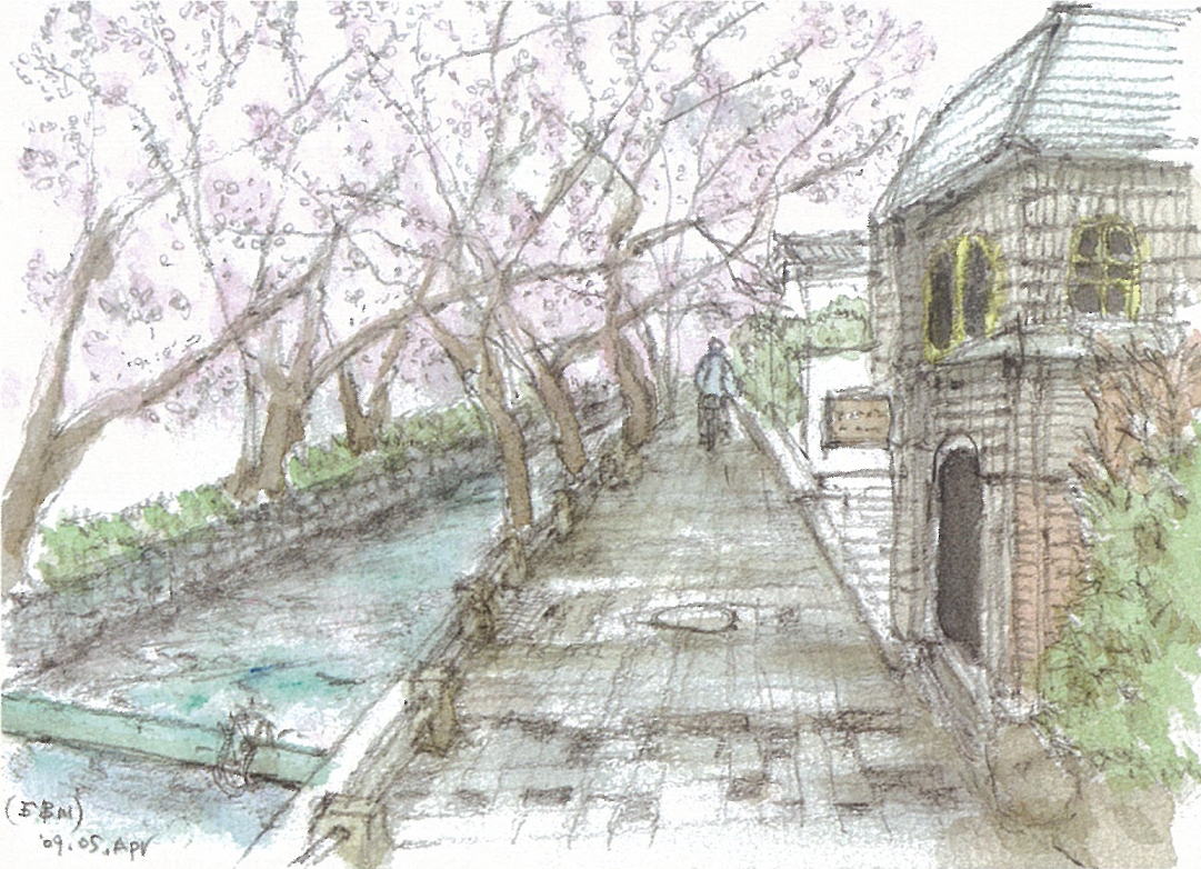 上の絵は、ギャラリーのある場所です。 サクラの多い通りで